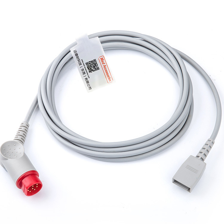 These cables are essential components of invasive blood pressure monitoring systems and play a crucial role in accurately measuring and displaying a patient's blood pressure values in clinical settings such as operating rooms, yoğun bakım üniteleri ve kalp bakım üniteleri.